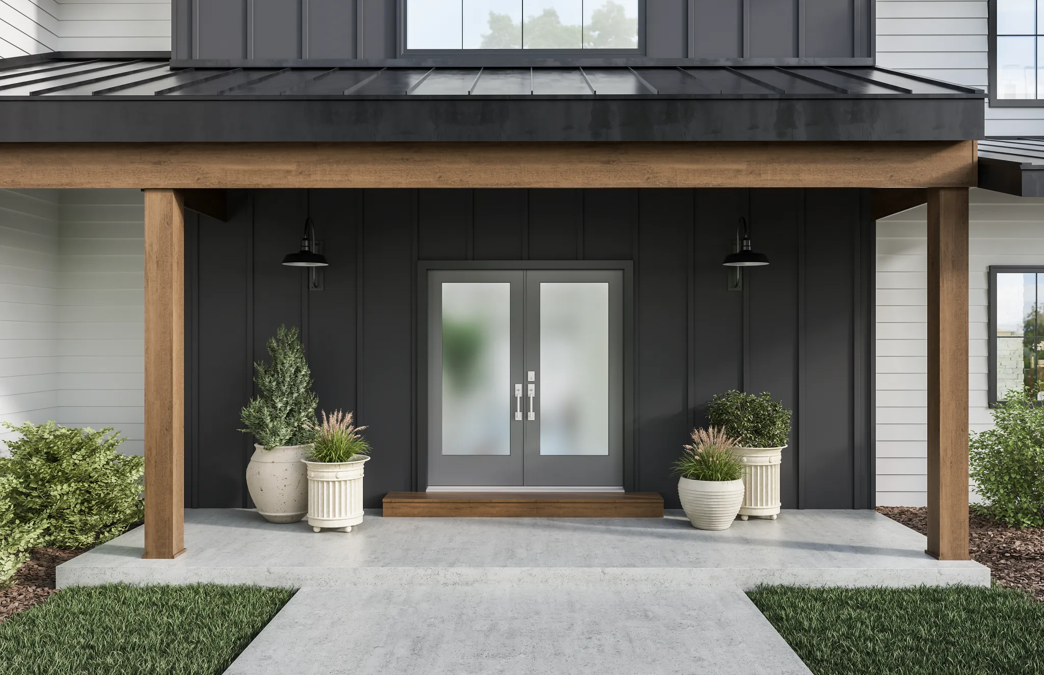 - Fiberglass Flush-Glazed doors have a modern, seamless look and require less maintenance than wood or steel doors.