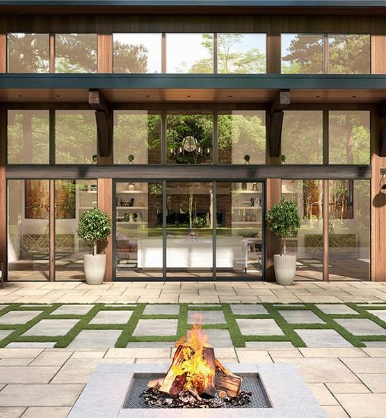 Large sliding glass panels offer sweeping outdoor views, flooding the room with natural light and fresh air. When it’s ...